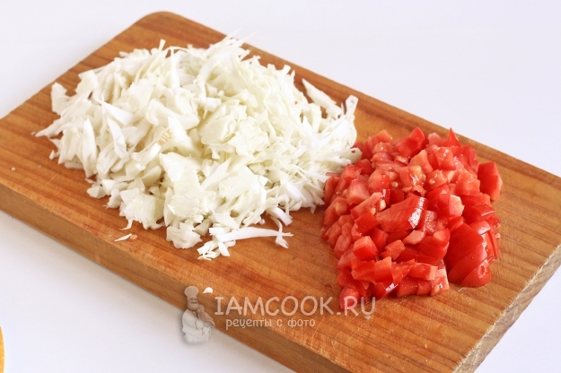 Подготовьте помидоры и капусту.