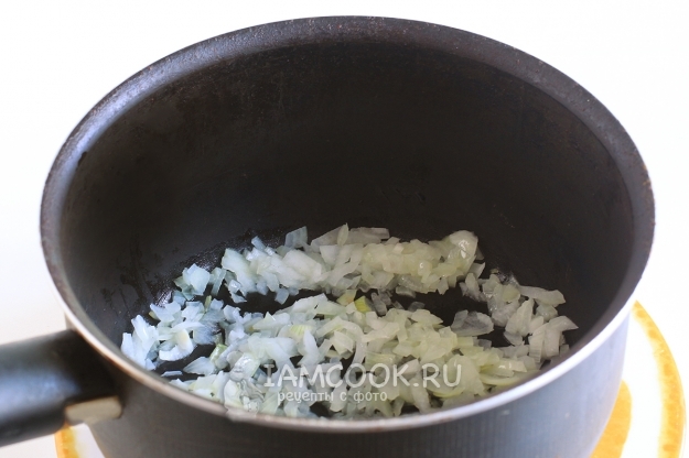 Отдельно в сотейнике обжарьте в растительном масле репчатый лук.
