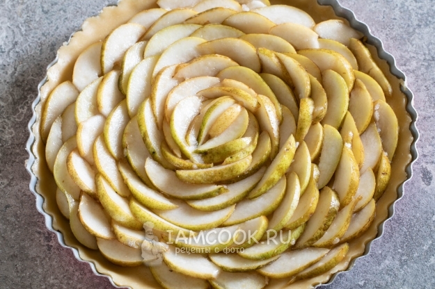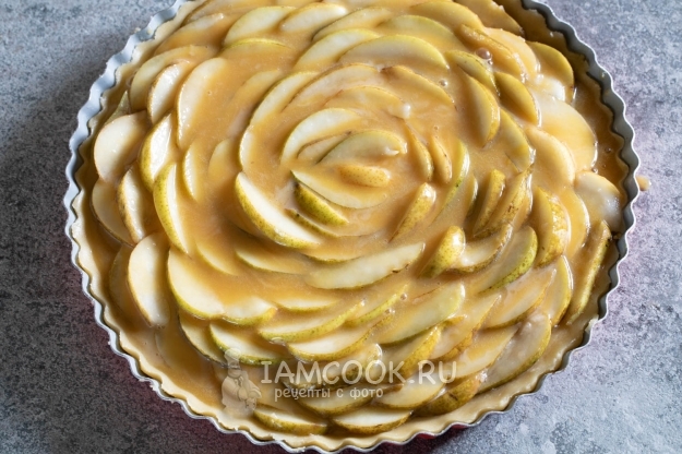 Выпекать тарт с грушей в предварительно прогретой до 200°С духовке на среднем уровне без циркуляции воздуха около 30 минут (до покоричневения бортиков).