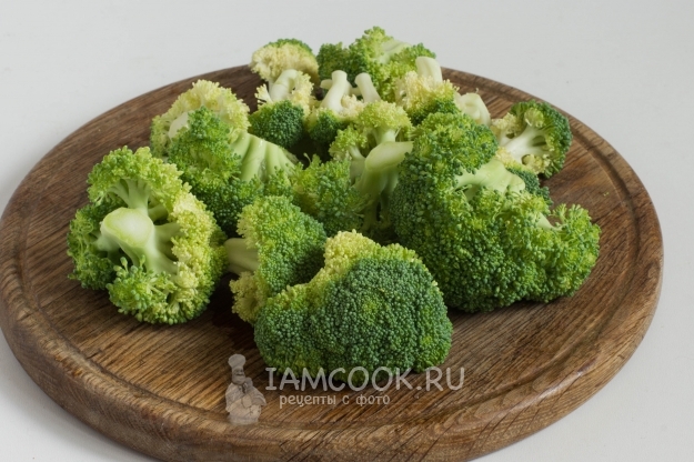 Форму для выпечки смажьте сливочным маслом, выложите соцветия брокколи.