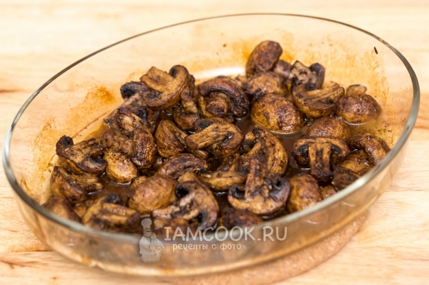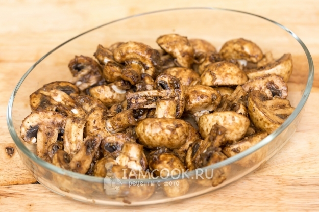 Затем грибы выкладываем в форму для запекания и отправляем в духовку.