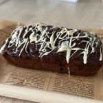 Готовый кекс полностью остудить и полить шоколадной глазурью. Сначала темной, а потом белой.