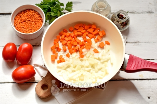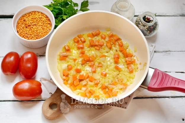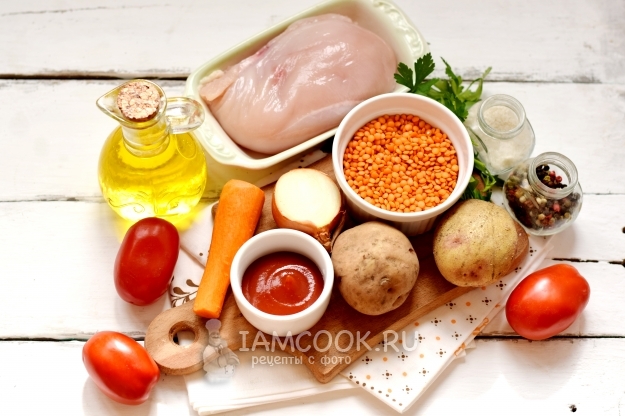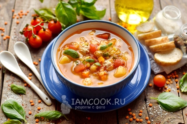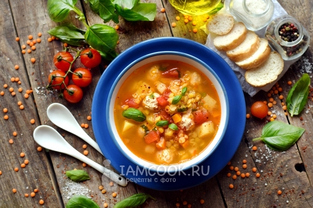 Сегодня готовим чечевичный суп с куриными фрикадельками и томатами. Для более насыщенного вкуса и цвета не лишним будет добавить томат-пасту.