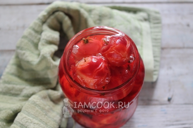 Приготовьте сладкую заготовку из мелких яблочек - ранетки в сиропе. Ранетки бывают разного вкуса, это слегка влияет на конечный продукт. Кроме того, ранетки бывают разной степени рыхлости, что тоже влияет на результат: яблочки треснут или нет в процессе тепловой обработки. Поэтому мягкие ранетки иногда протыкают деревянной палочкой у основания, это слегка предотвращает от растрескивания плодов при варке.