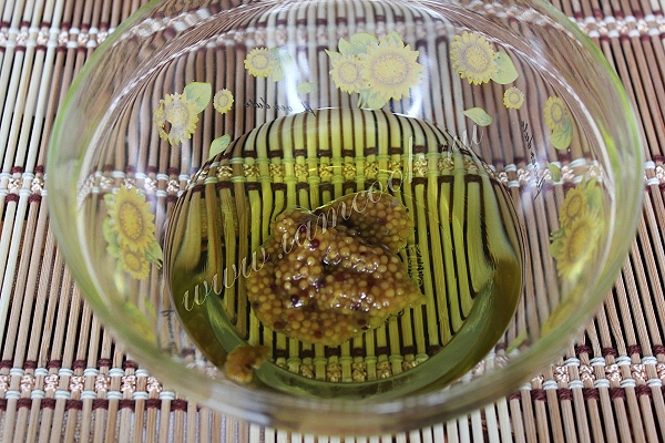 Для заправки салата соедините оливковое масло и зернистую горчицу. Перемешайте.