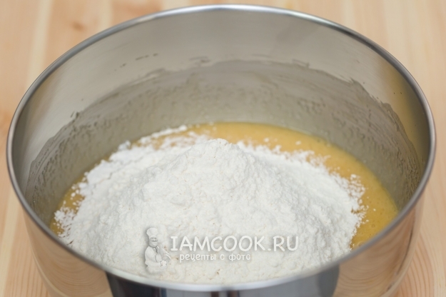 Перемешиваем ложкой, контролируя количество муки и плотность теста, которая необходима вам.