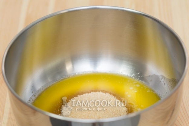 Сливочное масло растопим, немного охладим. Смешиваем с сахаром, ванилином и солью. Перетираем.