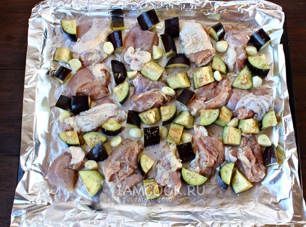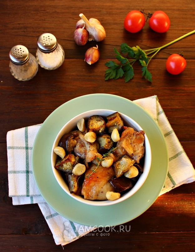 Ароматная курица, запеченная с баклажанами и чесноком, готова. Подаем сразу же на стол. Приятного аппетита!