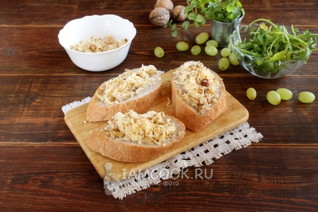 Густо покройте хлеб с маслом орехово-сырной смесью.