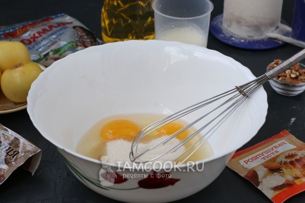 Тщательно взбить яйца с сахаром при помощи венчика или миксера.