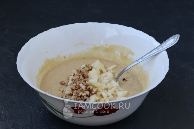 Яблоки почистить и нарезать кубиками, орехи нарубить ножом.