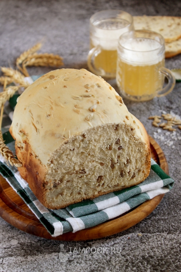 Тесто для этого хлеба замешивается не на воде или молоке, а на пиве. Дополнительно вводятся подсушенные подсолнечные семечки. В итоге мякиш имеет довольно грубую структуру и характерный, но ненавязчивый пивной привкус.