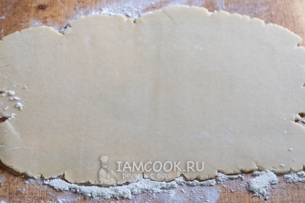 После охлаждения раскатываем песочное тесто где-то до толщины 4 мм.
