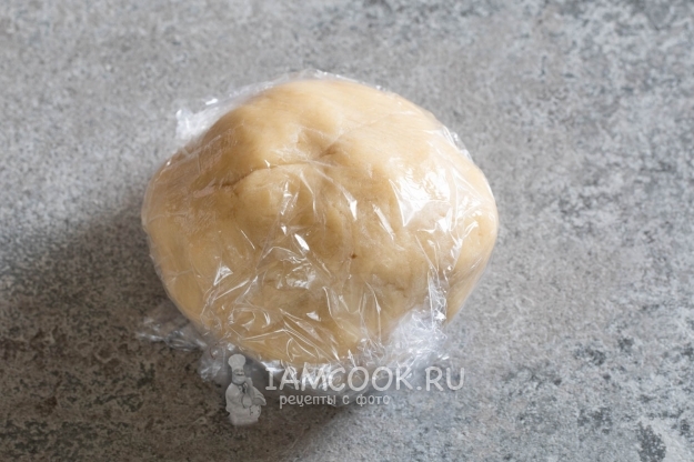 Руками формируем из теста ком, оборачиваем его в полиэтиленовую пленку и помещаем в холодильник на 30-60 минут.