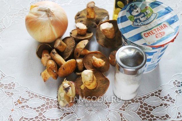 Итак, для приготовления жареных моховиков со сметаной возьмите продукты по списку.