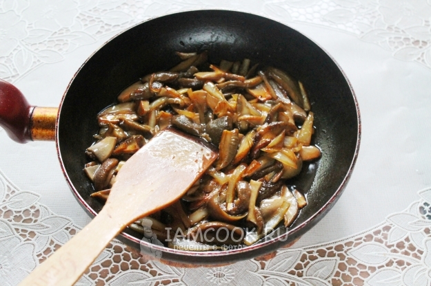 Добавляем грибы и обжариваем их до полного испарения жидкости.