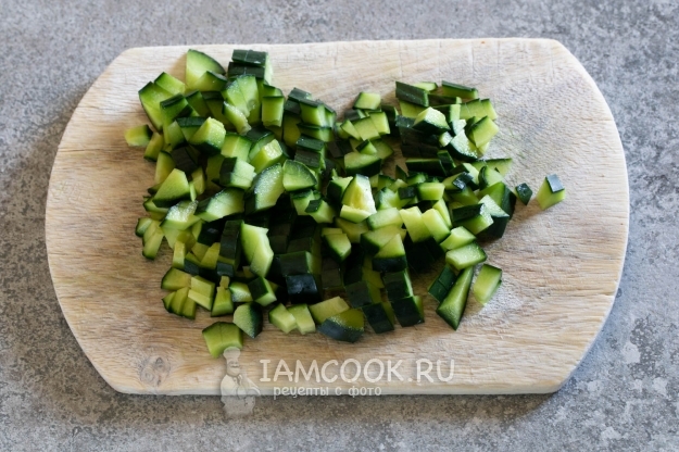 Огурец режем вдоль на 2 половины, ложкой вычищаем семена.
