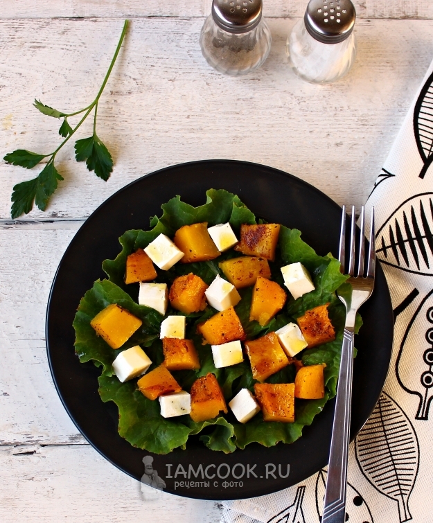 Сытный и вкусный салат с запеченной тыквой готов, подаем сразу же на стол. Приятного аппетита!