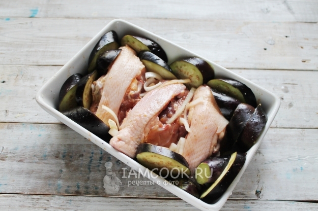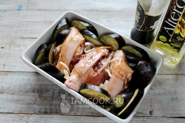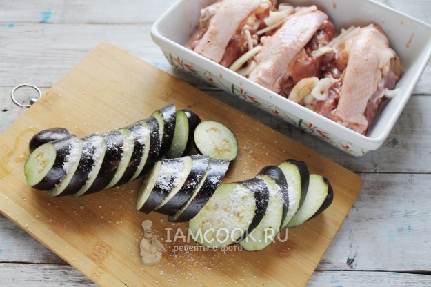 Уложите кружочки баклажанов "стоя" вокруг спинок.