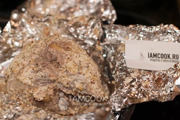 После того, как мясо приготовится, нужно освободить его от фольги. Достаточно только сверху.