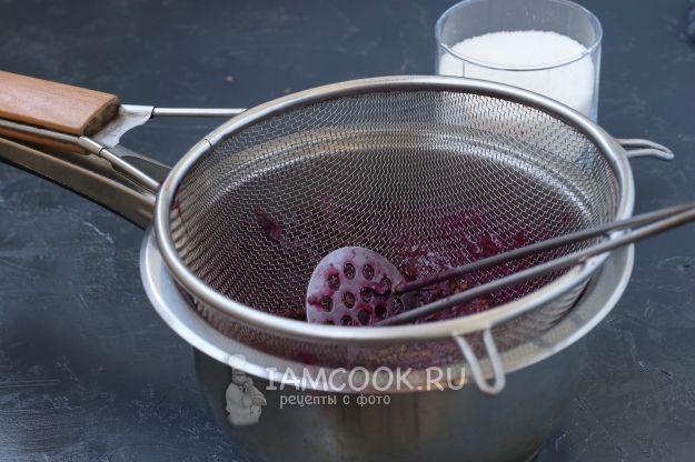 Затем ягоды протереть сквозь сито, чтобы шкурка и косточки не попадали в джем.