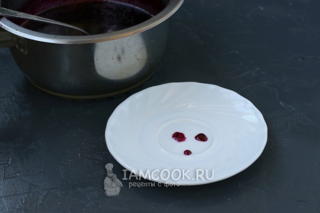 Варить джем на сильном огне, перемешивая. Готовность проверяем, капнув немного джема на блюдце. Если капля не растекается, значит, джем готов. У меня верхние капли - через 15 и 17 минут, а нижняя капля - через 20 минут - уже готовый джем.