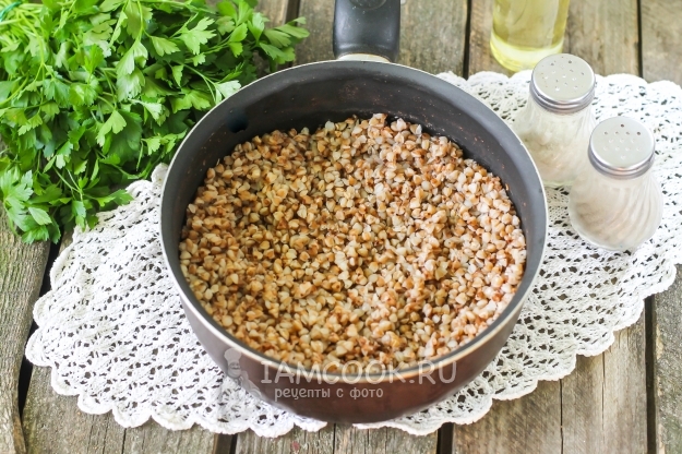 Переберите гречневую крупу, промойте ее в воде и отварите в казане или сотейнике в течение 15 минут. Затем накройте емкость крышкой и оставьте для пропаривания еще на 5 минут - крупа втянет в себя излишки жидкости.
