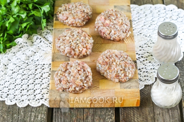 Чтобы котлеты из гречки не получились суховатыми на вкус, используйте свино-говяжий фарш, небольшая часть сала в них при прожарке будет растапливаться, а крупа - впитывать жир. Старайтесь не переварить крупу, чтобы она не превратилась в однородную вязкую массу, жидкости добавляйте чуть меньше нормы, иначе фарш для заготовок получится жидковатым, из него невозможно будет слепить котлеты.