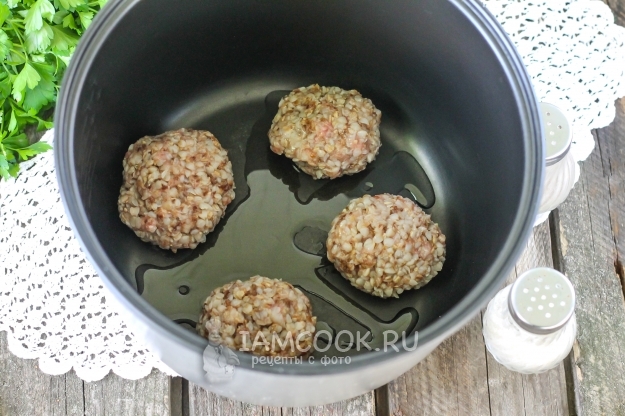 Обжарьте гречаники в мультиварке в течение 2 минут с каждой стороны, выложите и обжарьте остальные заготовки.