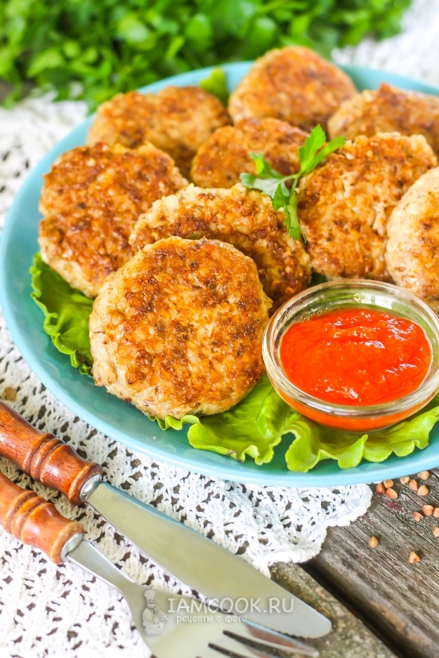 Подайте гречаники к столу теплыми, с соусом или сметаной.