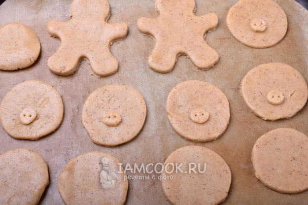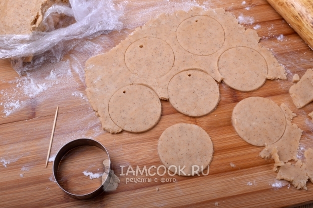 Если вы сделали отверстия под нитки, то пока печенье горячее, еще раз проткните отверстия зубочисткой, делая их более явными.