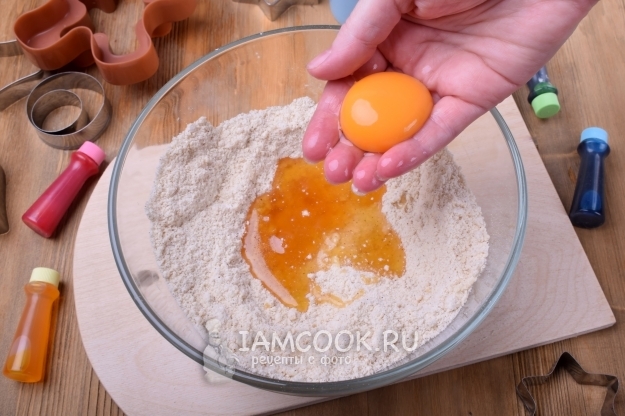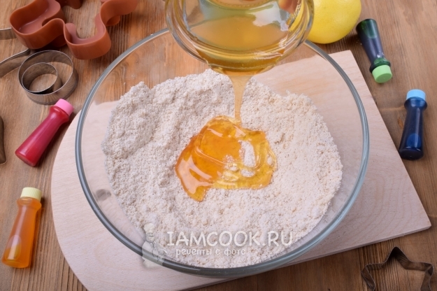 Готовому печенью нужно полностью остыть на кулинарной решетке перед украшением, а пока приготовим сахарную глазурь. В небольшой миске смешаем яичный белок и 2-3 капли лимонного сока. Начинаем активно перемешивать белок венчиком, взбивать не нужно, нам не нужны пузырьки воздуха в готовой глазури.