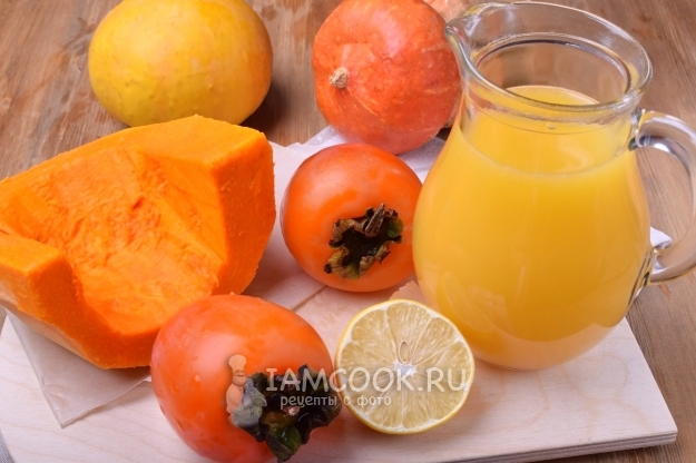 Подготовим ингредиенты для приготовления апельсинового смузи с хурмой и тыквенным пюре. Хурма нужна спелая, впрочем, как и тыква. Апельсиновый сок можно приготовить самим, а можно использовать пакетированный, главное, чтобы он был без добавления сахара, иначе готовый напиток получится слишком приторным. А количество лимонного сока регулируйте по вкусу.
