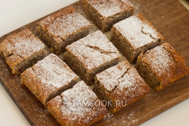 Поставьте в духовку, разогретую до 180 градусов, и выпекайте банановый кекс с грецкими орехами в течение 30-35 минут.