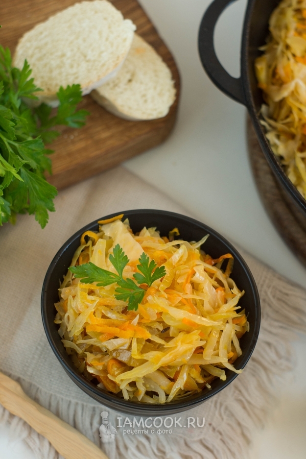 Тушёная капуста с яблоками и тмином готова! Это замечательное блюдо хорошо подавать как в горячем, так и в охлажденном виде.