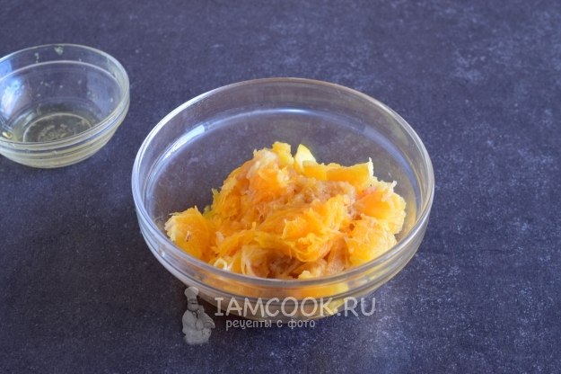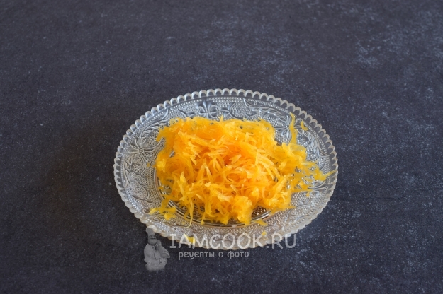 Тыкву очистить от кожуры и натереть мякоть на средней терке.