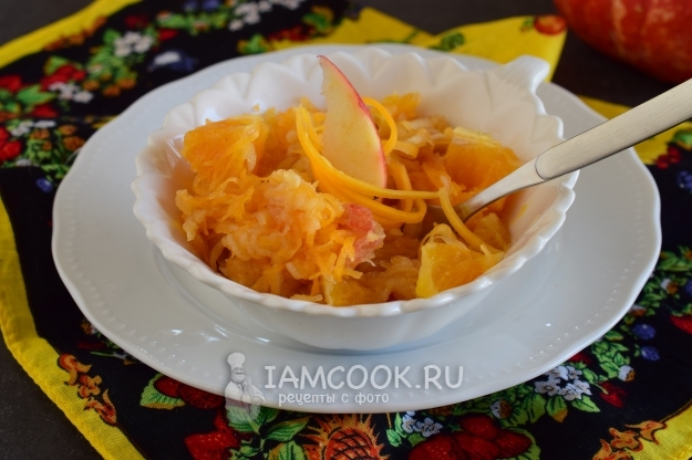 Прикрепляю фото готового салата из тыквы с яблоком и апельсином.