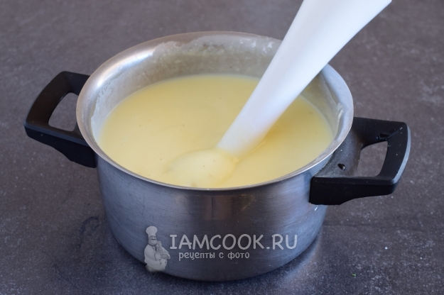 В самом конце добавить сливочный сыр. Хорошо перемешать все ингредиенты супа до полного растворения сыра.