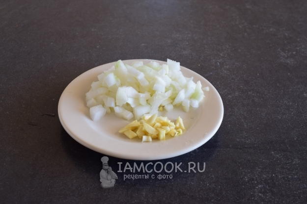 Лук и чеснок очистить и нарезать мелким кубиком.