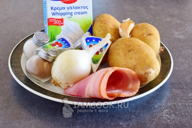 Подготовить все продукты для приготовления картофельного супа-пюре на сливках с беконом. Для этого супа лучше использовать быстро разваривающиеся сорта картофеля.