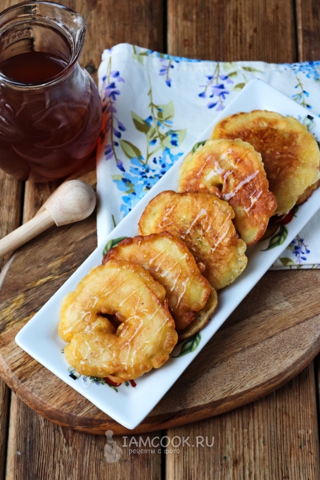 Вкусные, ароматные обжаренные на сковороде яблоки в кляре готовы.