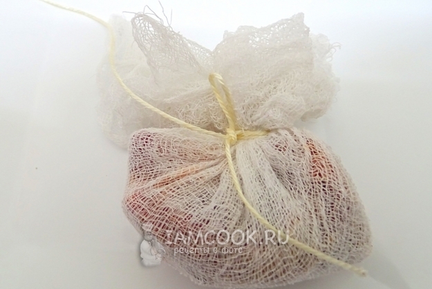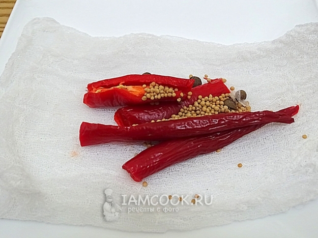 Душистый перец, перец Чили, чеснок, семена горчицы переносим на марлю.