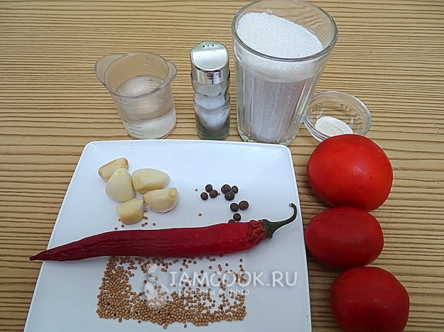 Чтобы приготовить томатный джем к мясу, нам понадобятся продукты, указанные в списке.