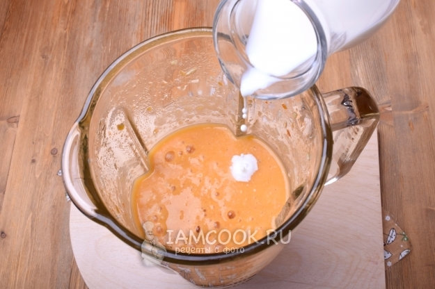 В чашу блендера к хурме добавим мякоть мандаринов, имбирь, отруби, мед и половину молока. Взобьем все на высокой скорости до однородности, а затем вольем оставшееся молоко и еще раз взобьем.