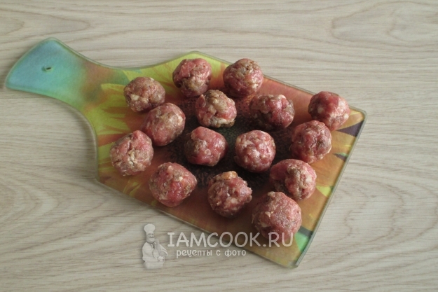 В фарш из баранины добавьте чуток соли и чеснок или сванскую соль. Сформируйте круглые заготовки - фрикадельки.