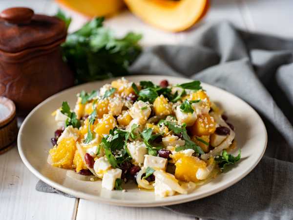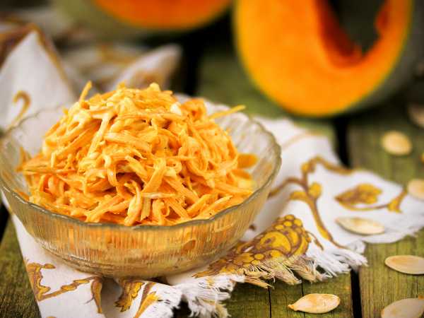 На стол салат из тыквы, моркови и корневого сельдерея подавать порционно, выложив изюм поверх салата. Можно и просто добавить изюм в салат в процессе приготовления.