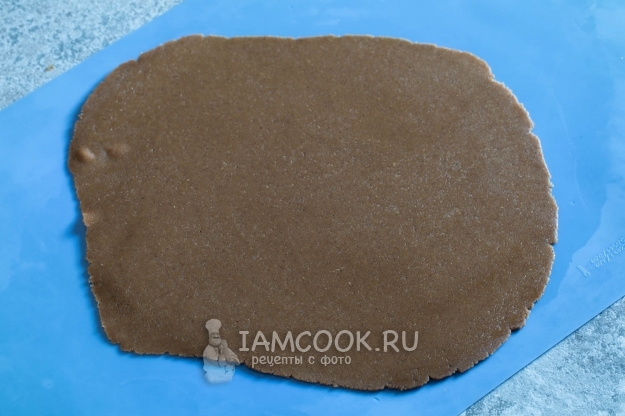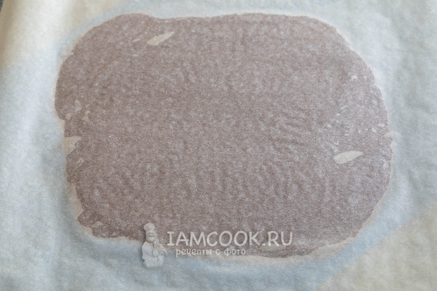 Раскатываем тесто до толщины 3-5 мм. Чтобы не портить его лишней мукой для раскатки, я катаю такое тесто между двумя силиконовыми листами.