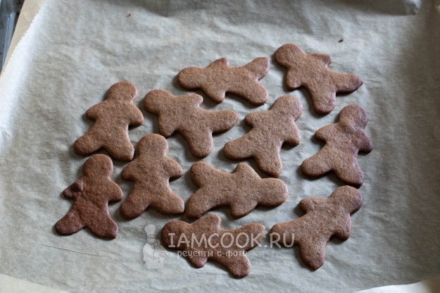 Выпекаем пряничных человечков в предварительно разогретой до 180°С духовке без циркуляции воздуха на среднем уровне 6-8 минут - до легкого покоричневения краев у какого-нибудь изделия.