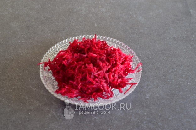 Свеклу свежую очистить и натереть на средней терке.