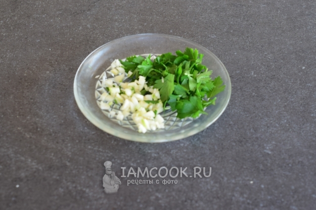 Чеснок и петрушку мелко порубить ножом.